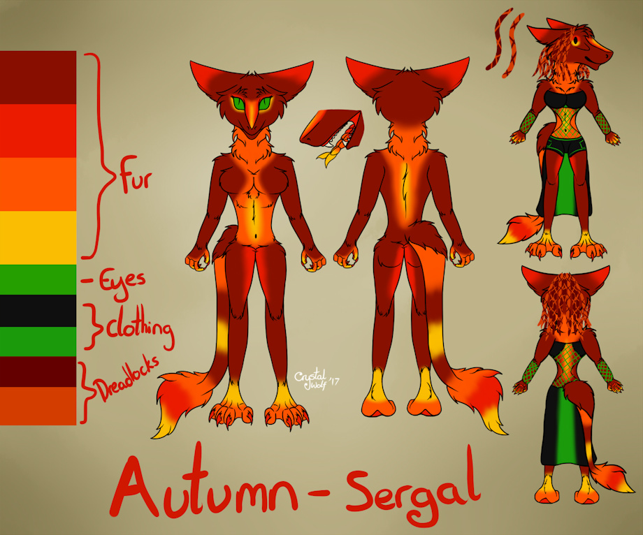 My Sergal Autumn was in desperate need of a new reference sheet. The only change to her design is her eye colour, everything else has stayed pretty much the same just displayed neater. Why is front views of Sergals so difficult? XD