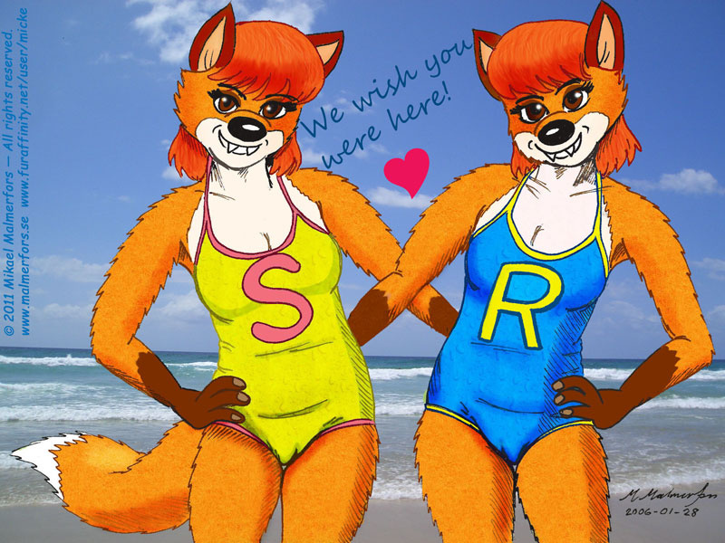 Slugelina & Rickelina - two reasonably dry vixens in wet swimsuits.