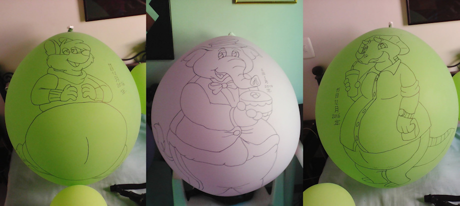 Some more giant balloons, this time one with Kitzune Zero with a big balloon belly, Mr Elephant from Thorpe Park, and Tops Tricerason character from McSaurus