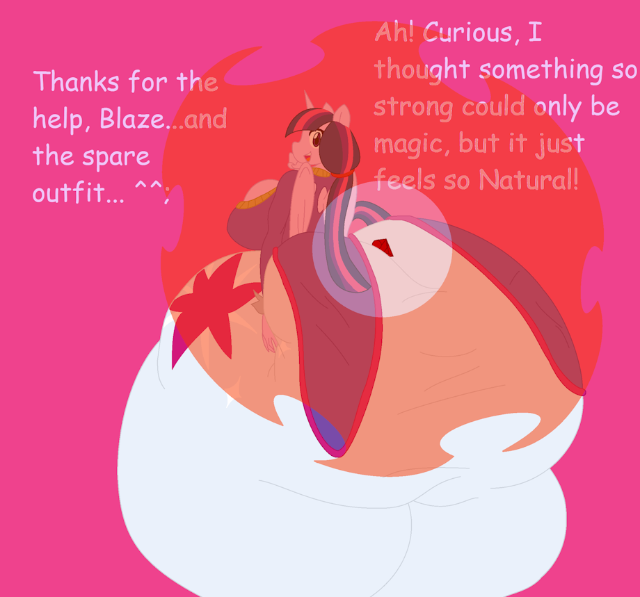 So, in continuing, we've got little old Twi getting the special treatment >v> I know it's hard to tell, but yeah, those're Blazes duds she's rocking. If there were an easier way to show that, I'd probably have done that.
