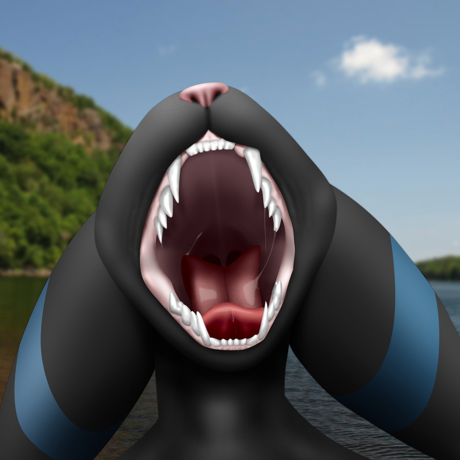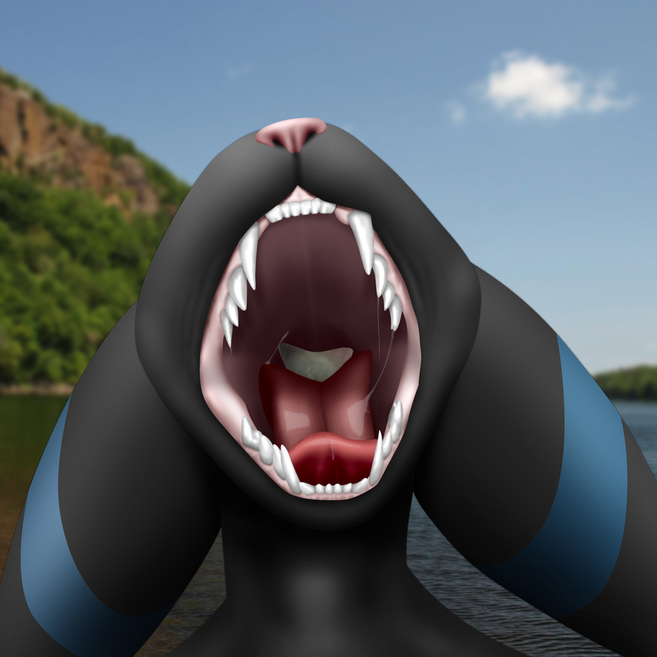 It's a shiny Umbreon mawshot. Not too much more to say about it, except that I have another version of this pic with a fish disappearing down his throat. Oh, Bludgeon did the base sketch for it! You should check out his page if you find it somewhere. He and I have done a lot together!"