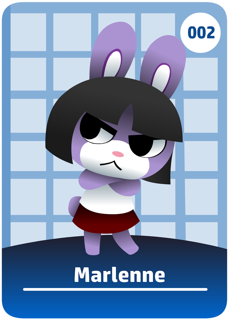 Marlenne in animal crossing style with the amiibo cards settings (notthetowninfo)