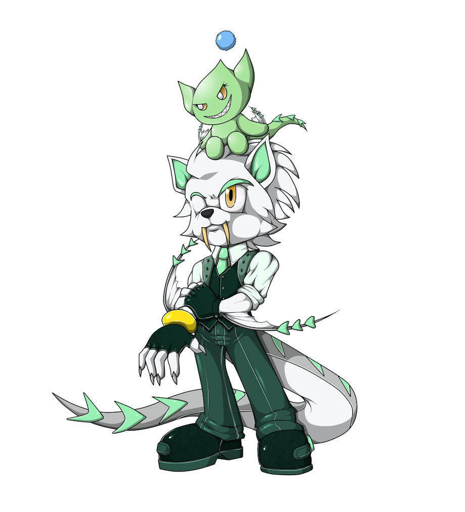 Despite his intimidating appearance Bastion is anything but, friendly to just about anyone he meets, he's even caught the attention of his own chao companion, Sugar, who seems to have made his head her own personal home. Though down't let his kind demeanor fool you, he was chosen as a Dark Egg Legion Sub-Boss for a reason, he is not one many would like to cross.