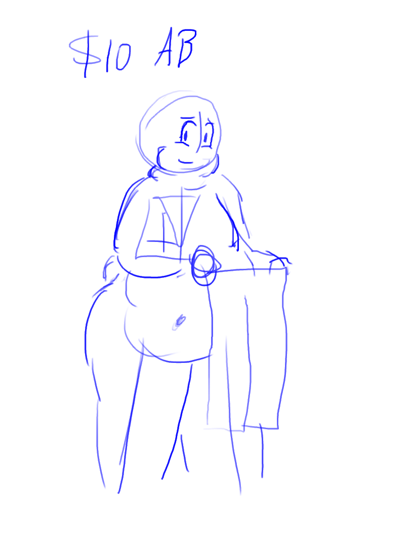 So, $10 AB, any gender, any species, unlimited slots for anyone who wants one done. Either a fat character or a character fattened up for the pic, holding up skinny pants, small shorts, or a skirt that in no way fits the fat form. I can make you bigger if you'd like.