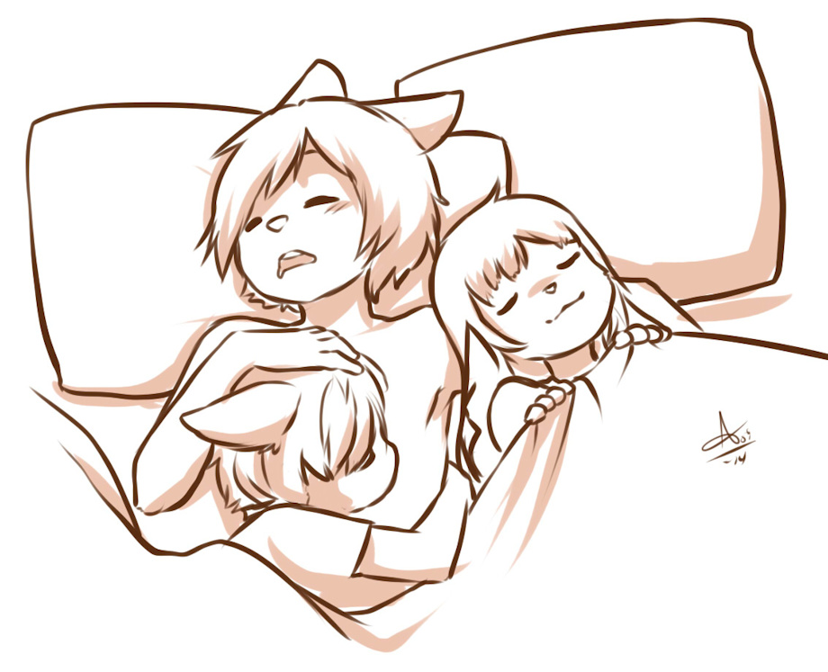 The loving father Rex snuggling his two new boys Allen and Vex~