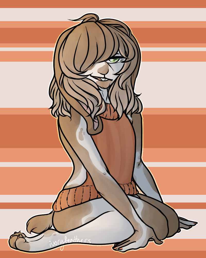 i needed to hop in on the bandwagon and draw one of my ocs in the virgin killer sweater, and my wife catitty recommended that i draw my bun Mocha