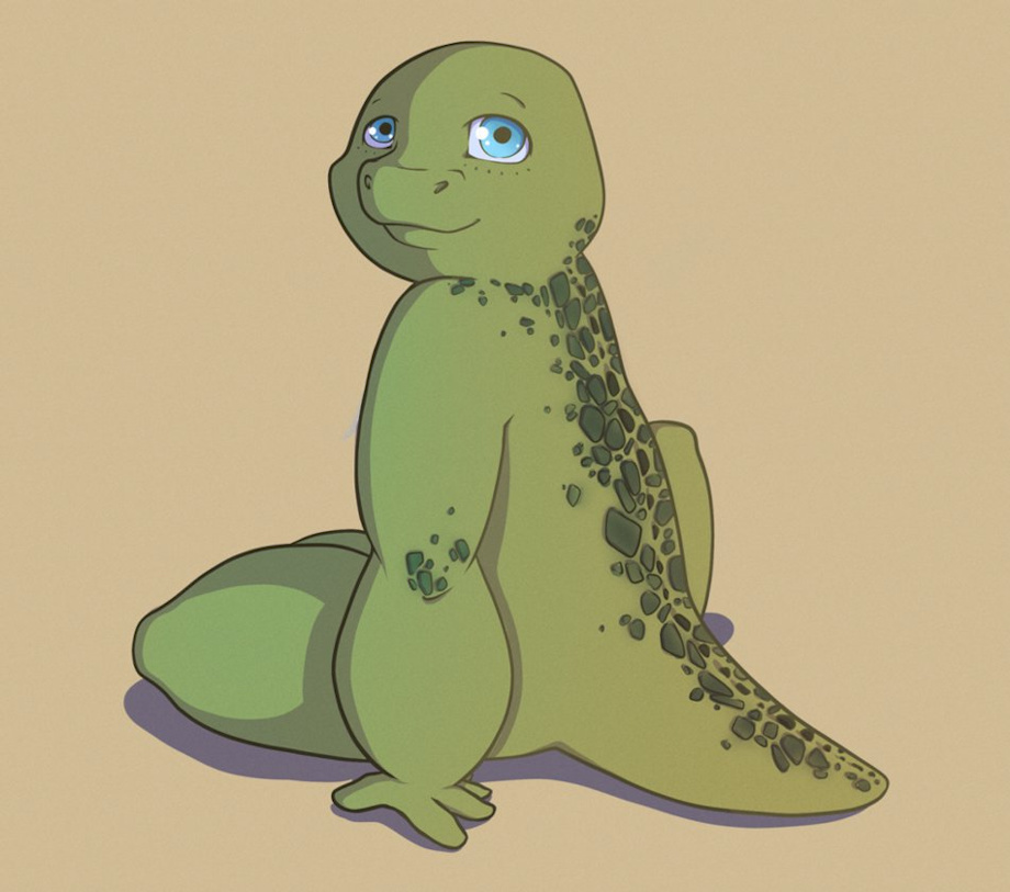 This is my TMNT OC (SnowFire). She is the daughter of Raph, Donny, and LeatherHead. She is made genetically, it can be any theory, but mine is that Donny gets something changed in him by either Bishop or aliens. He and the other 2 have sex, whatever was changed about him combines the 3 DNA and BOOM! You get this lil cutie. This is her at a year old, she is all chubby and cute! LeatherHeads DNA was more dominant then the turtle DNA. So she dosent have a shell, but scales/plates along her tummy and spine. She had a more flexible tail that looks more dragon then Gator. And right now she looks like Spike from The Land Before Time.