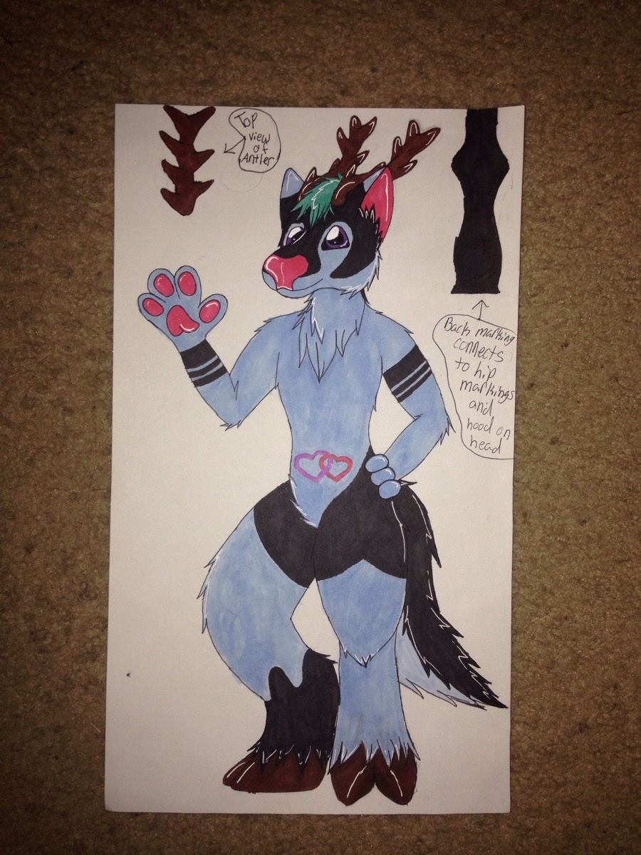 this is a very beautiful character my beloved mate seku made for me she is a hybrid species of deer and dog and her name is Hertencia the hearts on her belly represent her and her mate she is also a herm i look foward to getting art of her and her mate ( when seku makes hers )