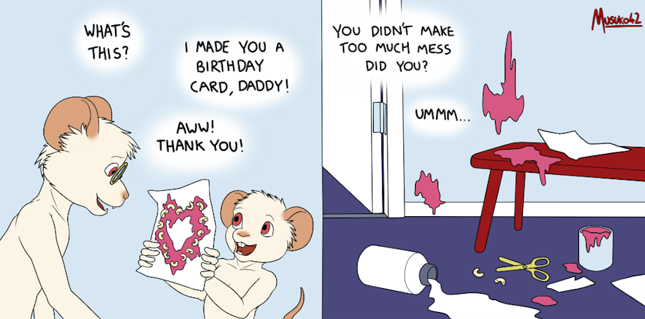 Very cute...but when he sees the mess, poor kid's bare bottom!^^