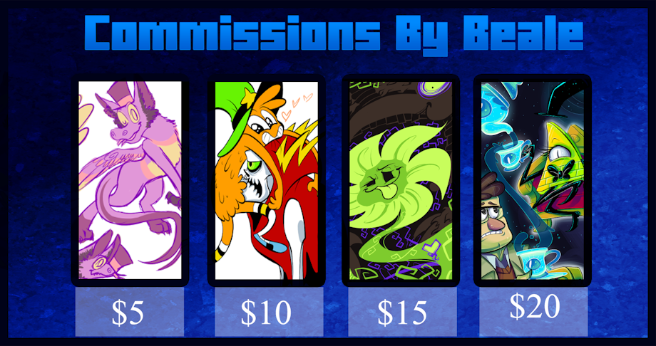 I'm open for commissions. I don't check my art accounts as Giga just strictly uploads for me. If you want to commission me please contact me at Thebealeciphers.tumblr.com