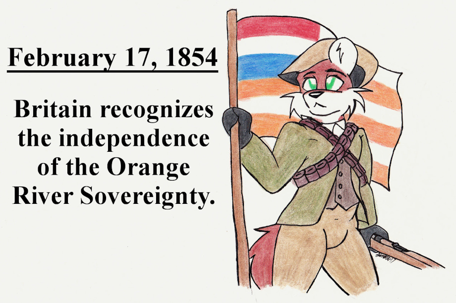 On February 17, 1854, Britain recognized the independence of the Orange River Sovereignty in South Africa. On February 23, this recognition of independence would be made official with the signing of the Orange River Convention by British and Boer representatives. This formally established the Boer republic of the Orange Free State which would remain an independent republic until its annexation by Great Britain in 1902 following the signing of the Treaty of Vereeniging at the end of the Second Boer War, becoming the Orange River Colony. The Orange River Colony would later unite with Natal Colony, Transvaal Colony, and Cape Colony to form the Union of South Africa in 1910 which would gain its independence from Britain in 1961 and become the Republic of South Africa.