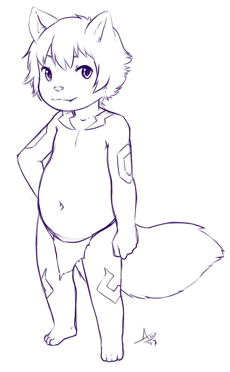 Nano-Byte is a young cub with a chubby body, short hair and various digital markings all over his body.
