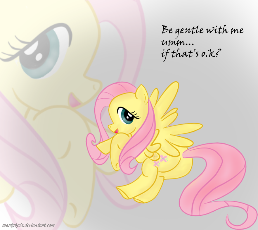 Aww!! she is so cute. I love the look on her face. Fluttershy may not be the coolest pony but she is the cutest one.