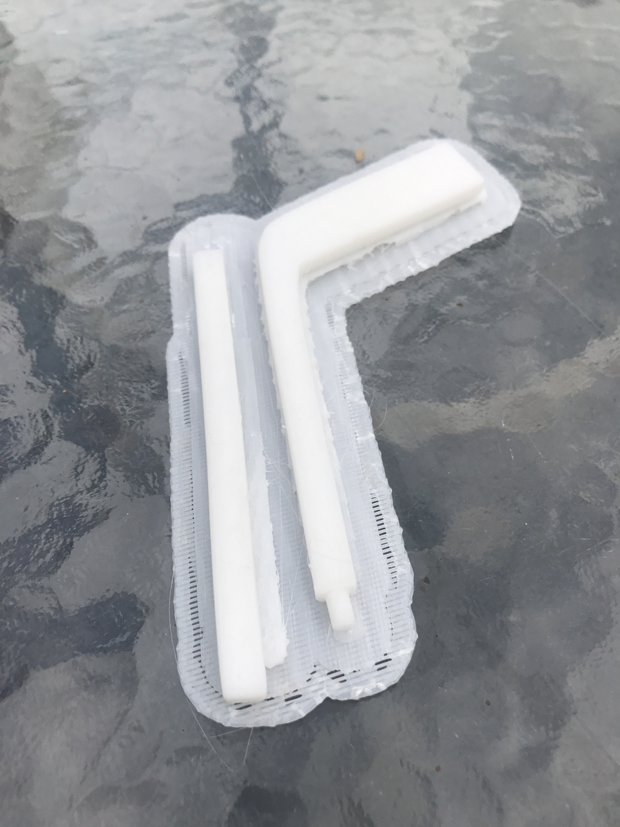 Well, yesterday (sunday) i attempted to print the final 2 parts. the hockeystick was too large for the printer, so i divided it into two parts, making three.