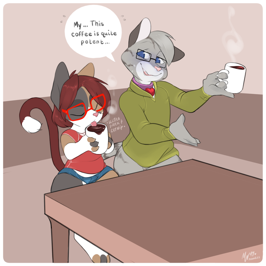 Chrissy's preferred blend of ultra dark coffee and catnip is pretty potent.