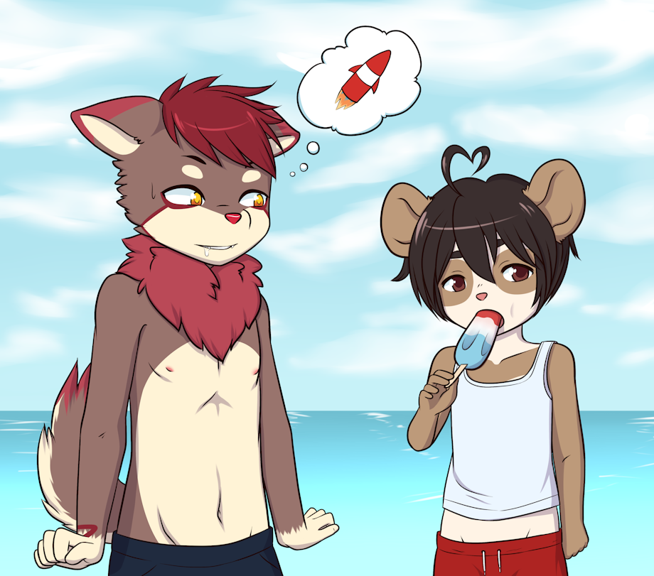 Pyre and Topher were having a casual stroll down the beachline when the little brown panda wanted a rocket pop... little did he know how Pyre's mind ran a million miles a minute with all things phallic.