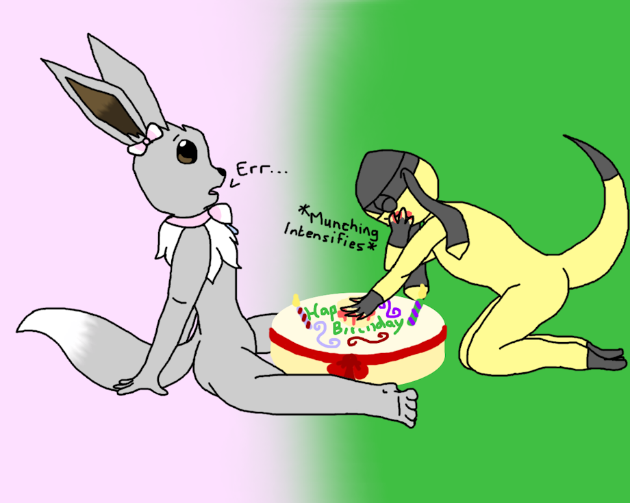 A pic of my vee and a liz butt enjoying our birthday cake together...well, one of us is