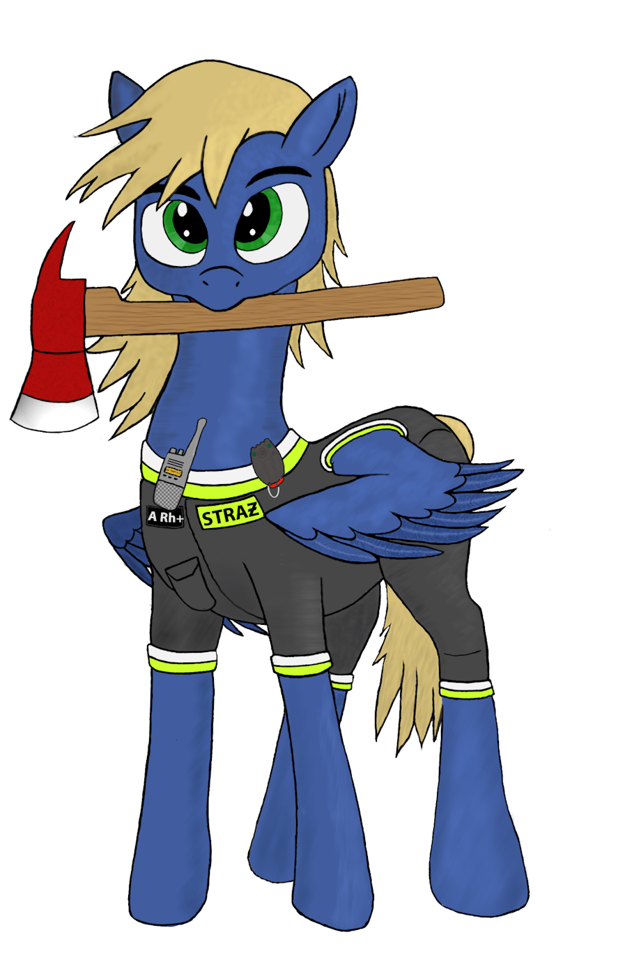 Meet Nuvola - the volunteer in Ponyville Fire Department. She hasn't got a strenght like earth pony or commanding skills like unicorns, but she's got other assets. As pegasus she is the best to do primary search, moreover she is able to reach heights, which are over the range of the longest ladders in whole Equestria., and also provide aerial support during wildfires. Usually she carries light equipment, radiophone and PASS device She is proud to be firefighter, and every succesfull action fills her heart with joy. Saving ponies lives was her greatest dream, since she had been a little filly.. Maybe someday she will give you a helping hoof. Who knows ?