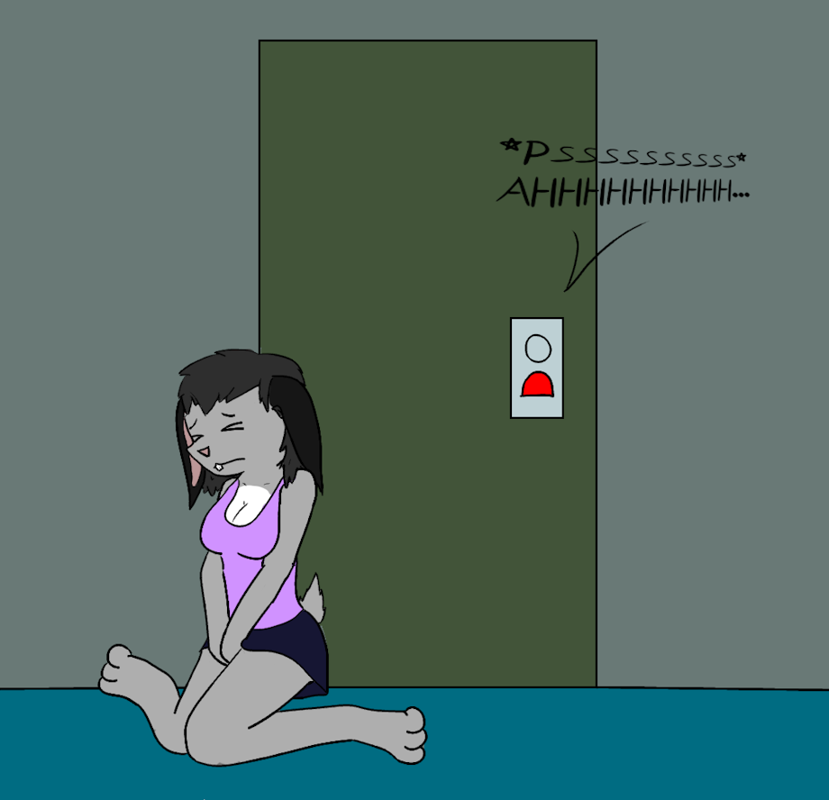 A bunny girl they wanted me to design, is waiting desperately outside of a bathroom door. Inside, someone is enjoying their relief quite loudly, which only makes her predicament a lot worse. Will she make it? Who knows.