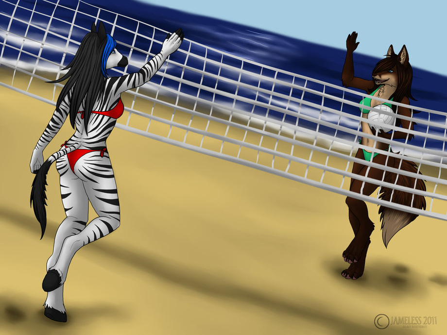 This is half of the commission slot I requested with me and laurenrivers playing a game of Beach Volleyball.