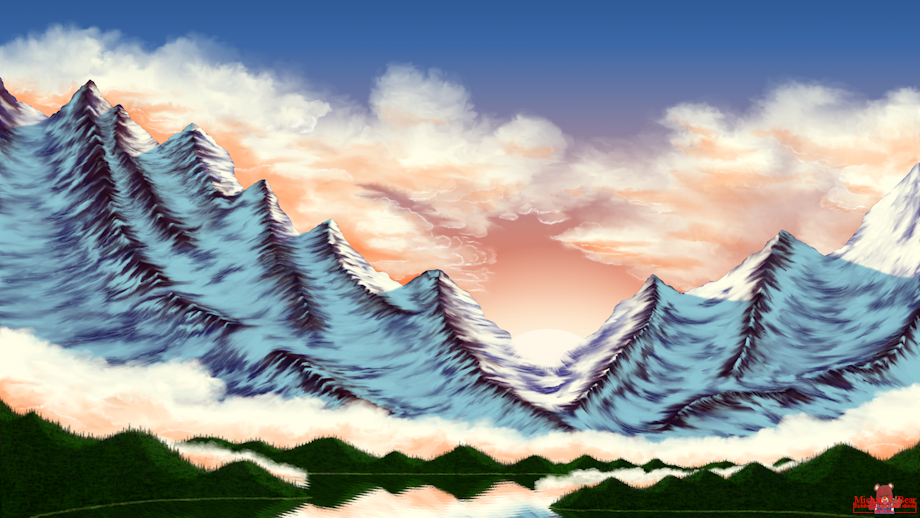 I must admit that when I've started this picture I was saying to myself ... What the hell was I thinking when I've started that one ... My puscher is really an asshole ... his stuff is really to strong for me ... It's so darn big X.X ... I stopped counting the time my PC played me ''tricks'' because I was almost at the limits of my memory but it was worth it I guess ... was really fun and instructive in a certain way. My idea at the first place was to make a kind of ''study'' of mountains texture/colors/ and to play with the transparency of the overlays ... LOL I'm glad that it came quite well ... but the size is quite darn BIG ... now it's time to let my PC rest from it's memory indigestion ... XD