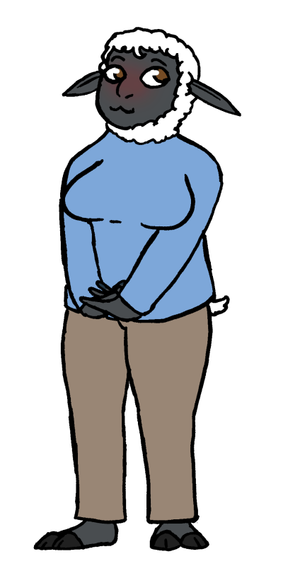 My prompts were: Sheep, female, shy, fluffy, chubby, and quiet.