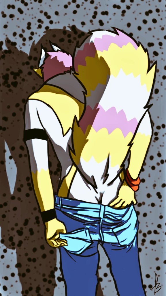 Enki lifting his tail to show his pandalope butt(lighter version)