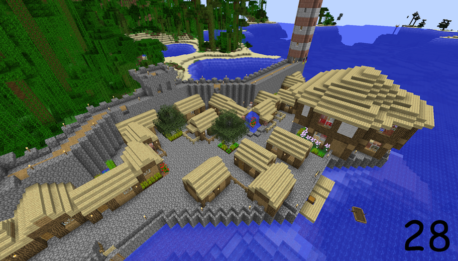 28 Marburgs Harbor-town. Many small houses for NPC villagers, I cured from Zombies and brought into town. It's the trading centre of city.