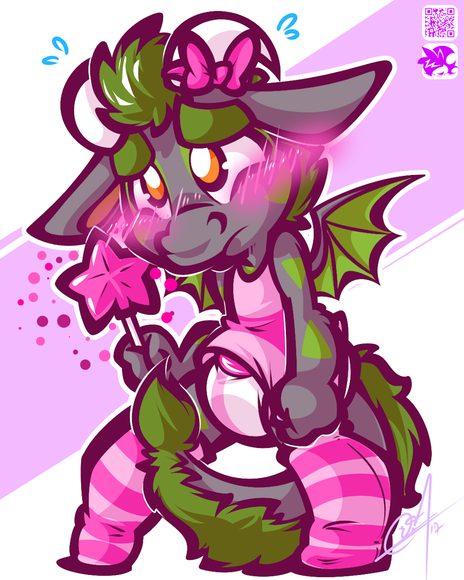 Corinn and Keaden were going shopping as they were looking for new clothes in a baby store for the dragon. "See anything that you want." Keaden stated to Corinn which he was riding in the shopping cart seat. He looked around seeing only cute designs or stuff with cartoons on them. "I dont like any of them," He crossed his arms. "You dont have to be so picky." "I just dont want anything cute." They walked up to the store clerk as the female cat looked at them, "Is there anything I can help you with?" "Yeah we are looking for clothes for this cute little one." "I dont really know about clothes for dragons but that machine will help you over there." See pointed to a weird machine in the back of the store. "Thanks." "I dont want to go there," Keaden was pushing the cart as Corinn was blushing. "Its either that or you walk around the city in nothing but a diaper." That got him to stop fussing. They finally reached the device as Keaden point in a code which read on the machine, "Dragon, age 4. Place child on the panel." Keaden took him out and placed him on the panel as he was pointing in more numbers. When he was in the machine robot arms untapped his diaper and held himself down as they put a pink one on him. "Why is it pink?!" The hands then pulled a pink dress over him as more tied ribbons to his horn and tail then placed the pink wand in his hand. "What is this!? I didnt want to be cute at all." The robot hand patted his bottom as the panel came out of the machine with it saying, "Cute clothes secured!" The little dragon came out of it blushing with Keaden giggling, "Do you like it?" "I hate pink!" He was about to take it off until he remembered about going around only in a diaper. The two walked out of the store as Corinn was still blushing. "You do know im going to get you back." "Quiet little princess." He put a pick pacifier in Corinn's mouth.