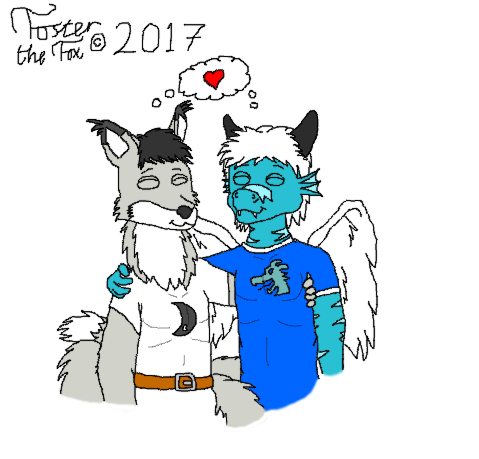 Here we have a Demikitsune and an western ice dragon in their leotards having a good ol' side hug (since I can't draw a full hug that good).