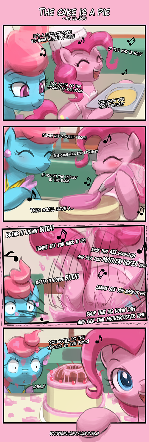 XD *snort* This is so funny~ <3 Pinkie's butt is full of frosting. So yummy with a touch of pleasur