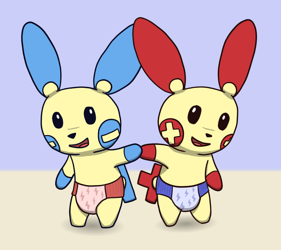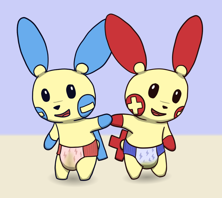 One day, deciding to change things up, Plusle and Minun wore each other's diapers pullups. The results were totally cute.