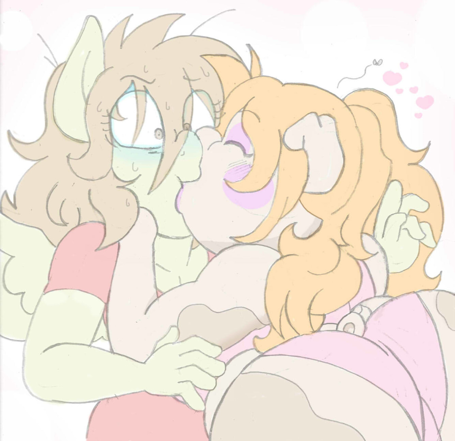 Just a little kissing/perspective practice with Beth (blondee piggo) and the object of her constant teasing, Feather.