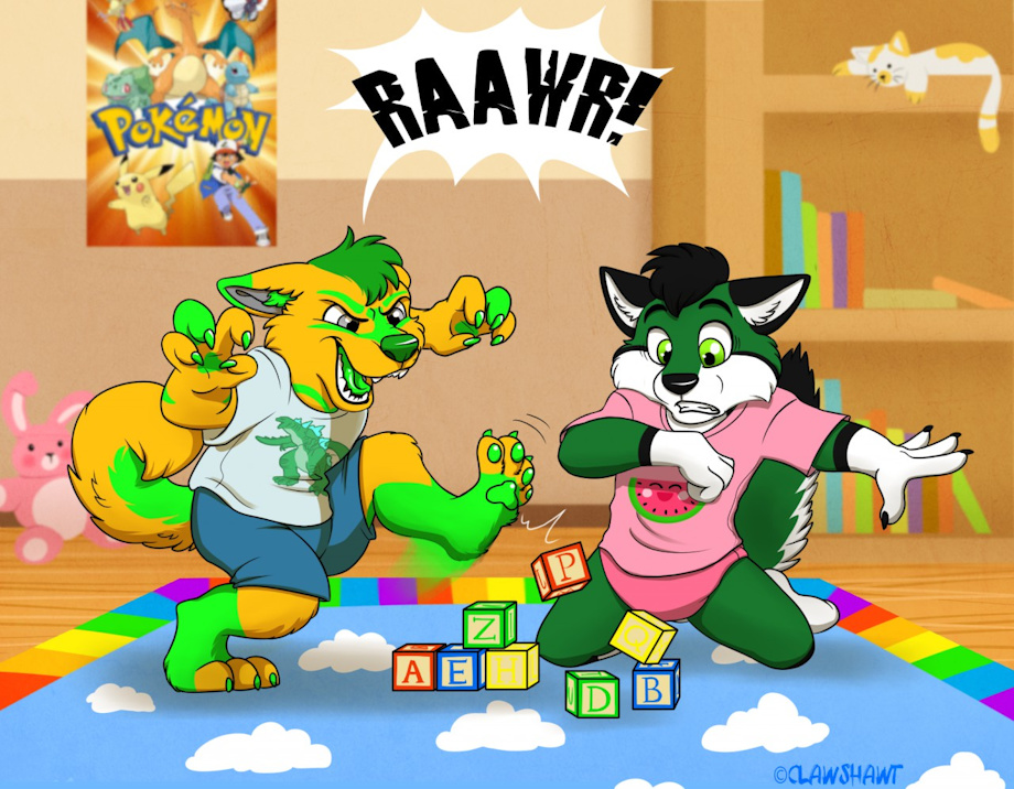 GlowSticks knocking down baby brother's blocks by Clawshawt