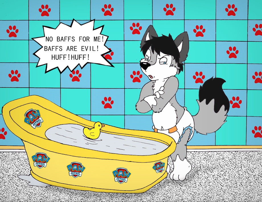 I'll never surrender to the tyranny of parentatorship ! I'll not go willingly in this pool of water that has no other goal that to drown me ! I'll be like Rocky from Paw Patrol and fight it to the end ! You can't make me ! You may spank my bottom and put me in, but you'll never break the free puppy spirit that is mine !