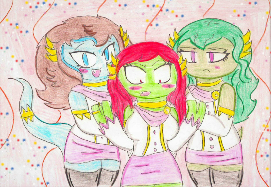 Here three of the best girls start a party where they wear these outfits to lighten the show up. Julie doesn't like wearing these kind of outfits after the night she got drunk and Takeda seeing her in the outfit.