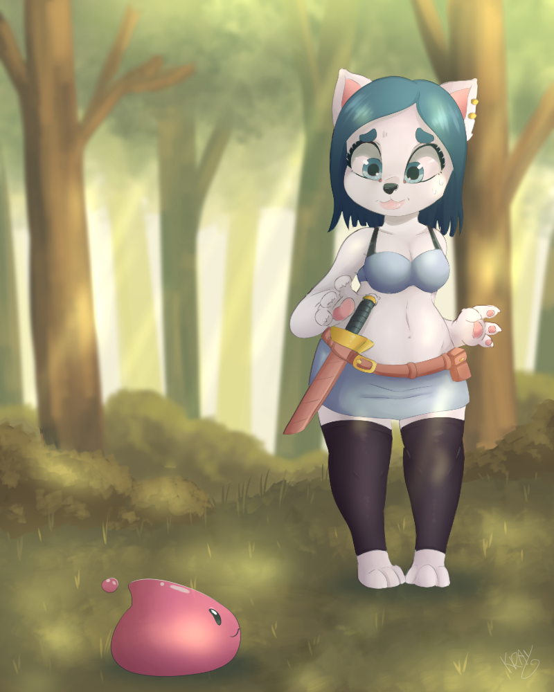 Take all the time you need to do whatever you have to do in university and draw whenever you feel your able to comfortably I say. Really like how cute you drew this typical RPG like scenario with the slime enemy and all. Nice work and keep it up Kray n_n
