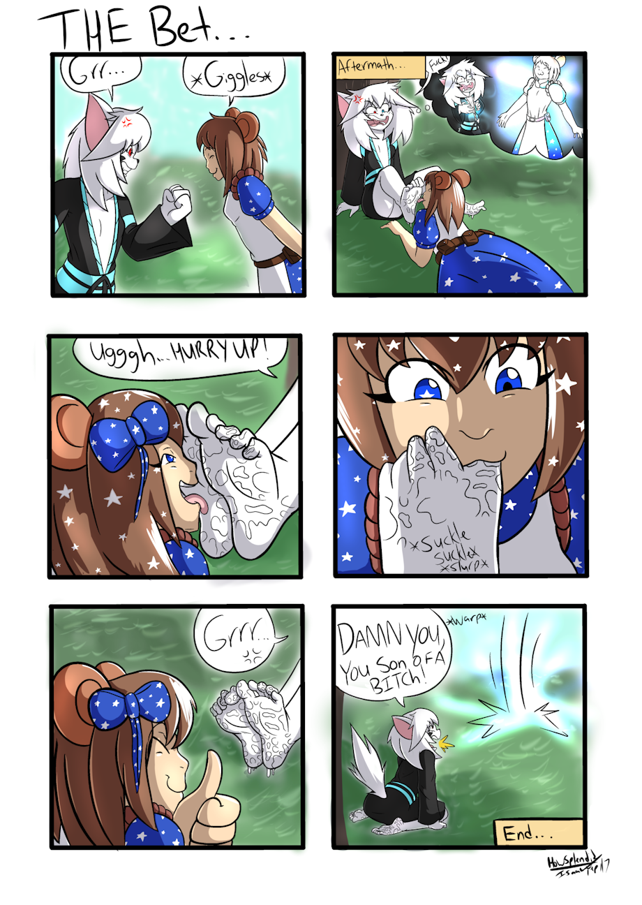 Comic commission I did for XxSTAR-GODDESSxX of my character Caroline losing a bet of magic to their character Amelia. Poor Caroline. She pooped up this time >>;