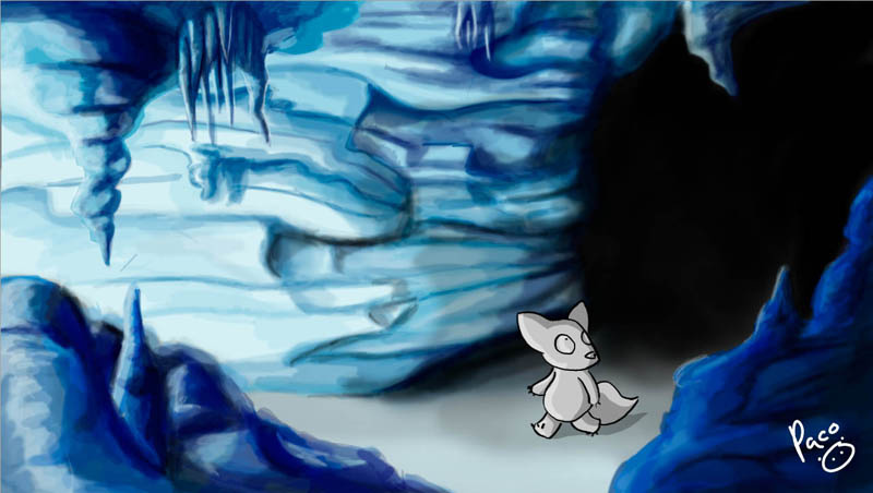 This fellow seems brave. :3 I love that cool cave atmosphere you've made here!