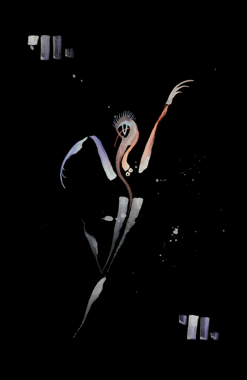I work a lot in inverted colors. There’s a meditative quality to tracking what color becomes what, and what intensity means from the positive to negative. I suppose I could be all proper-artist about it, but frankly the process came from two places: The desire to save on black paint, and the desire to have rich colors against a black background.
