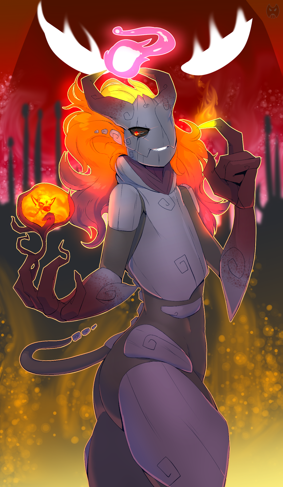 Seriously though that is a a bad ass character design my dude. nice contrast between a villain made of wood and the warm fire vibe.