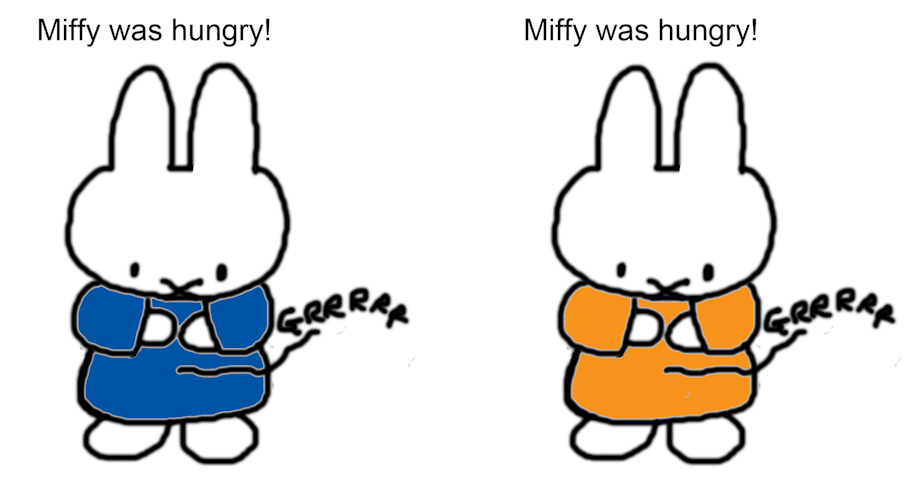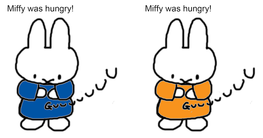 I drew Miffy with a rumbling stomach. Don't see much of that around lol <:3 They are all in doubles as one is the more modern blue Miffy and the orange is the colour of the traditional books of Miffy so it is just so you can choose preference. Same with the different rumble types. How do you like stomach noises drawn in art? Let me know in the comments X3