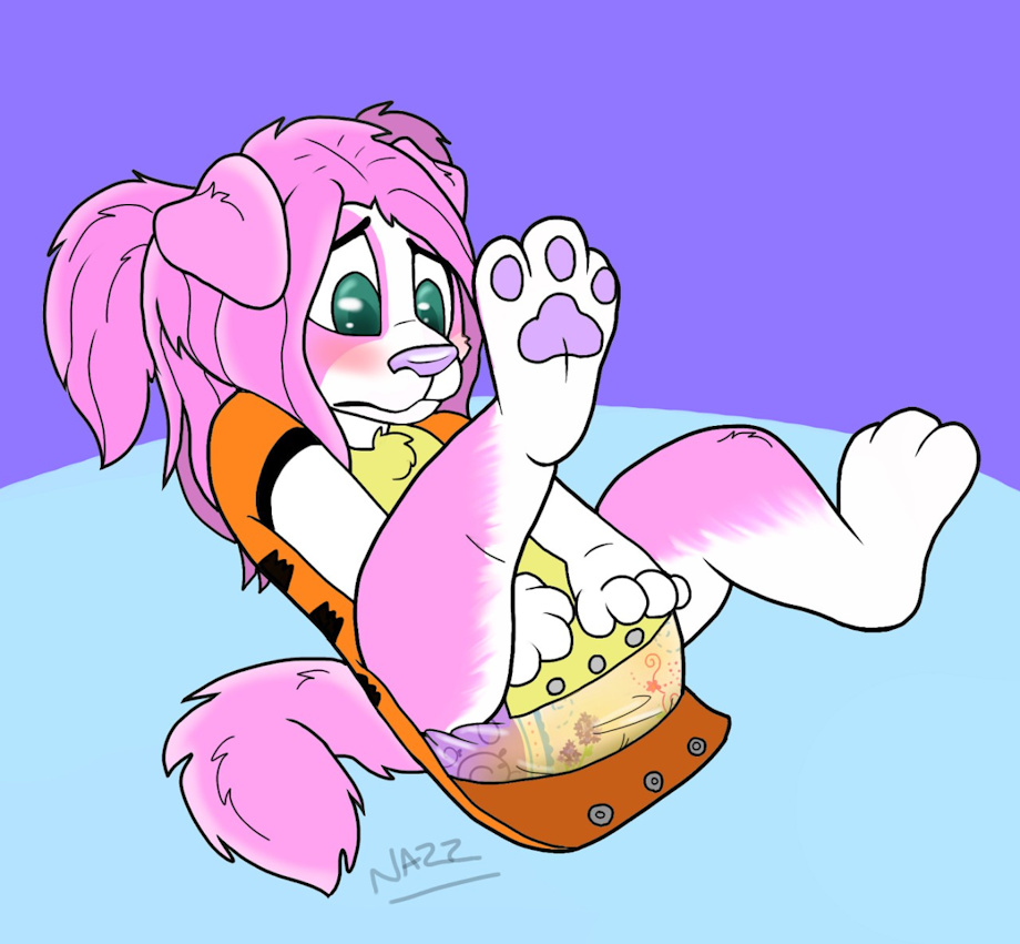 Sapphire was being a cute little 4 year old puppy as usual, running around the yard playing with her toys and herding plushie sheep inside her nursery when all the sudden the puppy ended up flooding her thick pawpers around her waist, which was normal for an unhousetrained 4 year old doggy however due to how much soaked she caused the pawper sagged to the point the onesie buttons snapped and came undone! Revealing what a soaked little puppy she was~! She tried her hardest in every position to fix it but failed, a few minutes later her caretaker entered the room and saw what happened the caretaker chuckled a bit before taking a photo of the accident~ Sapphire blushing and whining before she was then taken off for a change~!