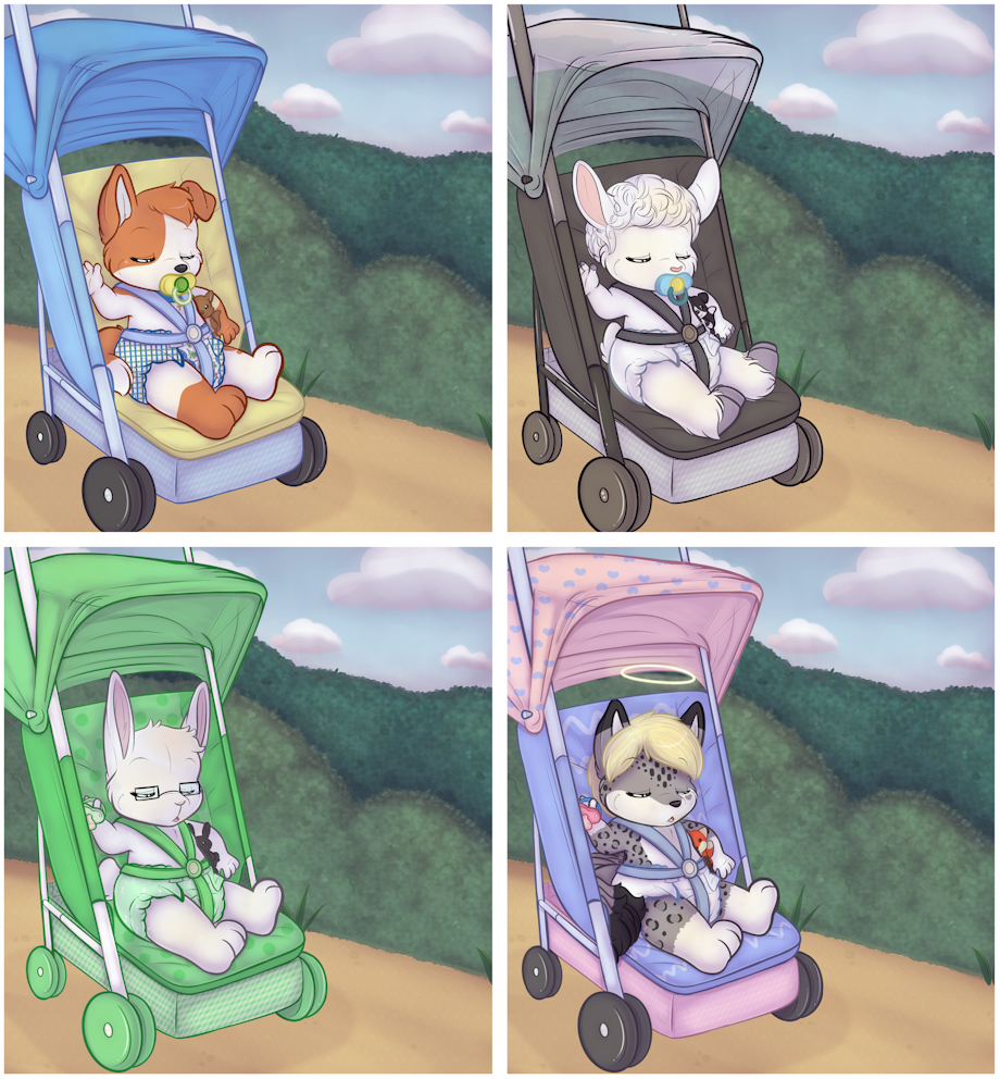 What could be cuter than a bunch of babyfurs sleeping peacefully in their strollers at the park? :P