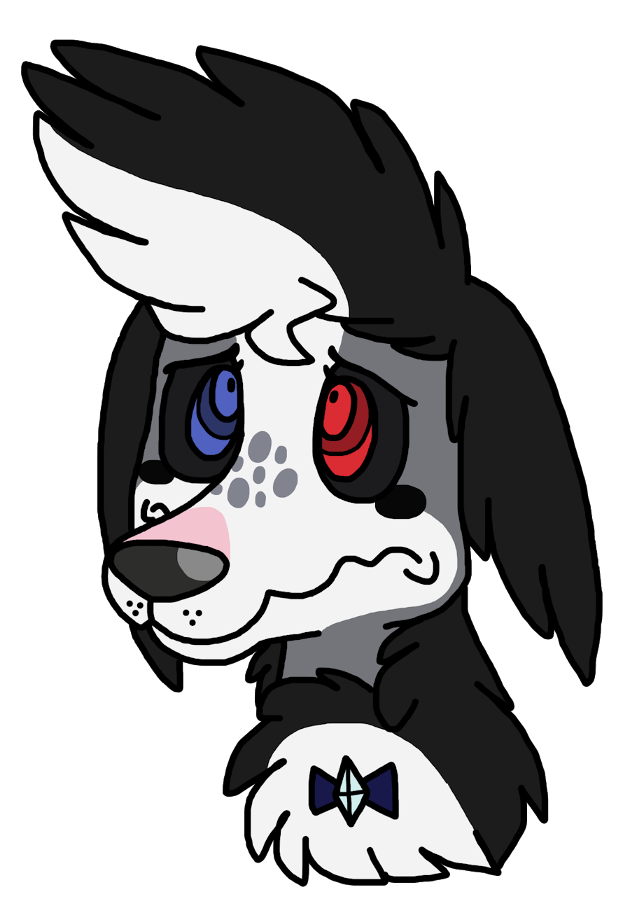 (I was trying to do that thing with the swirly eyes like that scene in All Dog Go To Heaven when they get to the Alligator's "lair" of sorts. It looks more like he's being hypnotized, which is a theory I don't mind. Honestly, it's up to interpretation.) (That bowtie is also another accessory he wears often.) (I love his expression so much. Took forever to get his muzzle down, but it was worth it~)