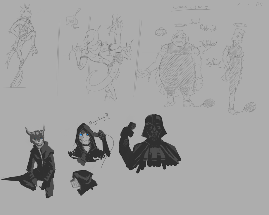 made some random over fantasized characters i might use as filkler characters in my comic, and he made... hoodies.