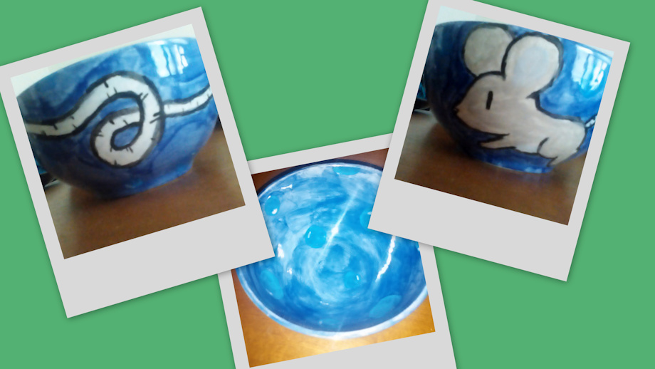 As you might know I like adorable things, and I like drawing them, so when I went to the pottery shop to get a bowl I draw a mouse and painted it. The colors kinda blended (Since I can barley see colors) but it turned out nicely. Hope you like this little picture collection, sorry about the size of it.