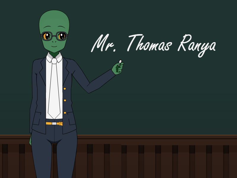 The joke is that there exists a company called Bullfrog Films, which produces/distributes educational films, centering primarily around environmental issues. Since the company deals in the kind of stuff that'd be shown in schools, I figured it'd be a clever idea to have a bullfrog schoolteacher.