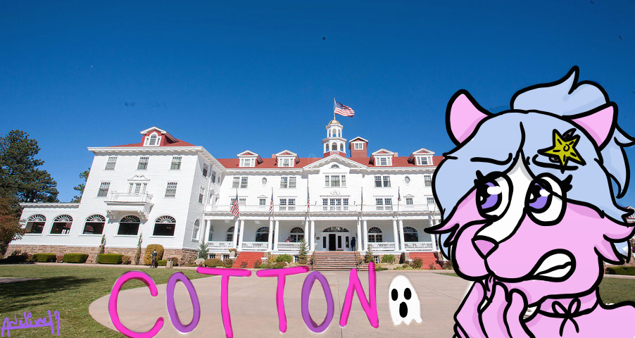 Their character Cotton being all spooked by the ever ghostly Stanley Hotel!! :O :O :O
