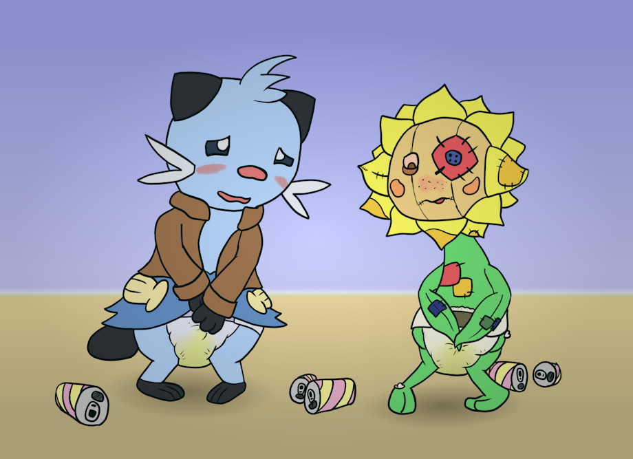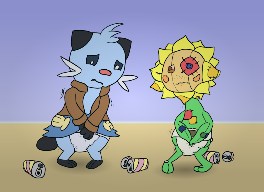 A contest to see who can holding the longest between Oscar the Dewott and Reese the Sunflora.